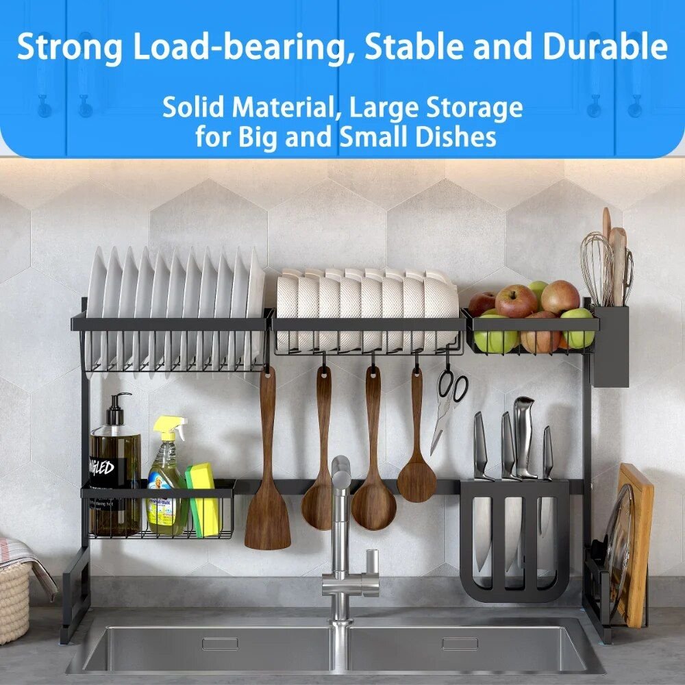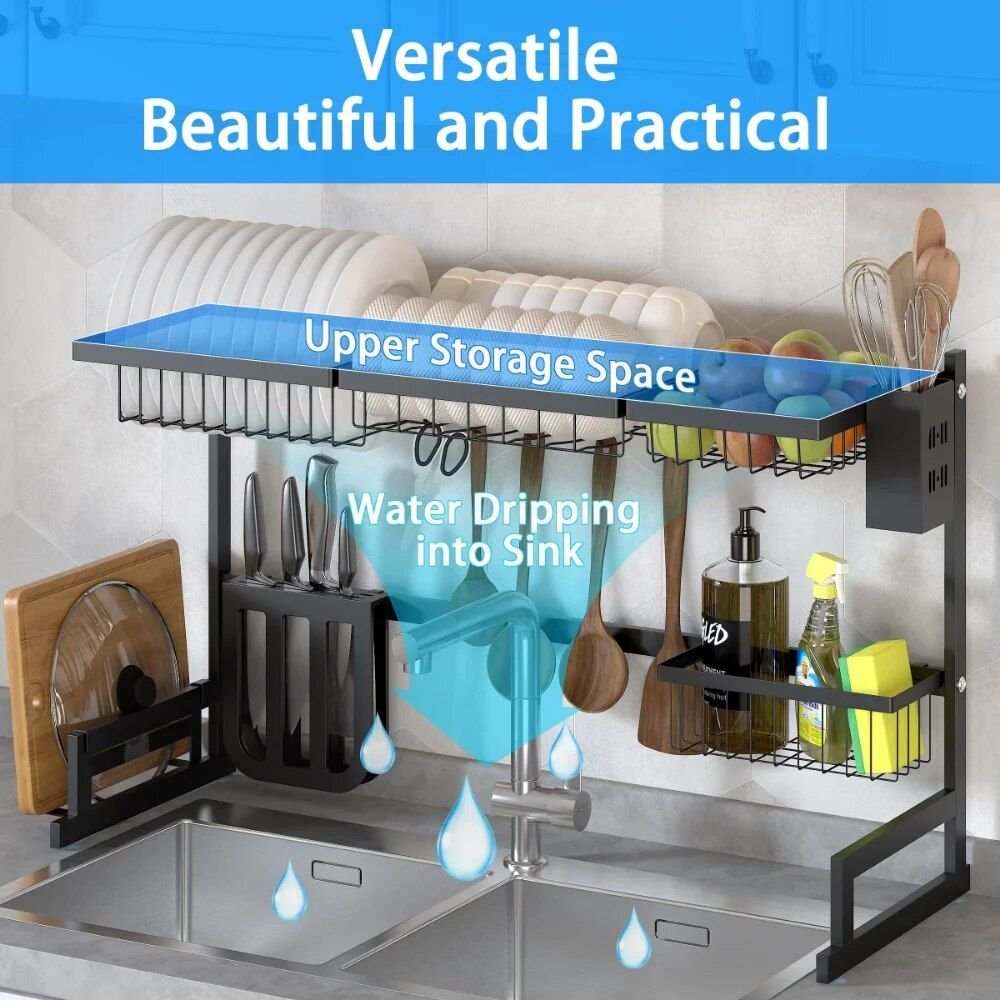 Discover the ultimate solution for your kitchen organization needs with our Multi-functional Over Sink Stainless Steel Dish Rack. Designed to maximize space and efficiency, this sleek and sturdy dish rack transforms kitchen chores into a breeze. Its elegant matt black finish not only complements any kitchen decor but also promises long-lasting durability and ease of cleaning.