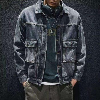 Men’s Trendy Retro Denim Jacket – Loose Fit Casual Spring/Autumn Coat