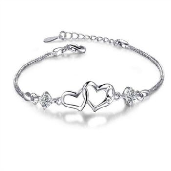 Sterling Silver Crystal Heart Charm Bracelet for Women