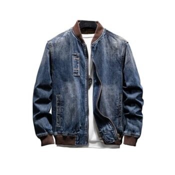 Men’s Casual Denim Bomber Jacket – Classic Autumn/Winter Fashion