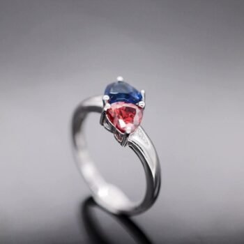 Heart Crystal Engagement Rings with Red & Blue Stones for Women – Romantic Wedding Jewelry Gifts