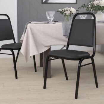 Elegant Black Vinyl Trapezoidal Banquet Chair – High Capacity, Stackable & Versatile