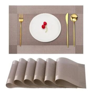 Classic Beige Vinyl Weave Placemats, 12″x18″ Heat Resistant Table Mats – Set of 6