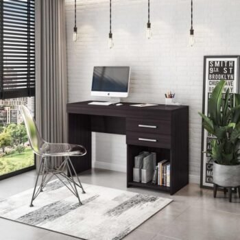 Space-Saving Home Office Writing Desk with Shelves & Sturdy Metal Frame
